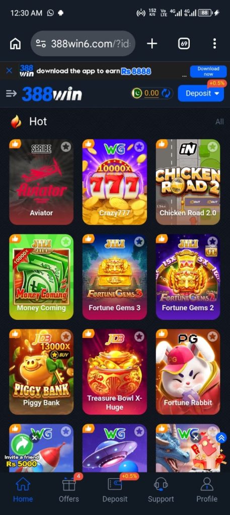 388 Win Com is an online Android gaming application designed specifically for users in Pakistan. It provides a mix of digital slot games and traditional card-based games popular in South Asia.