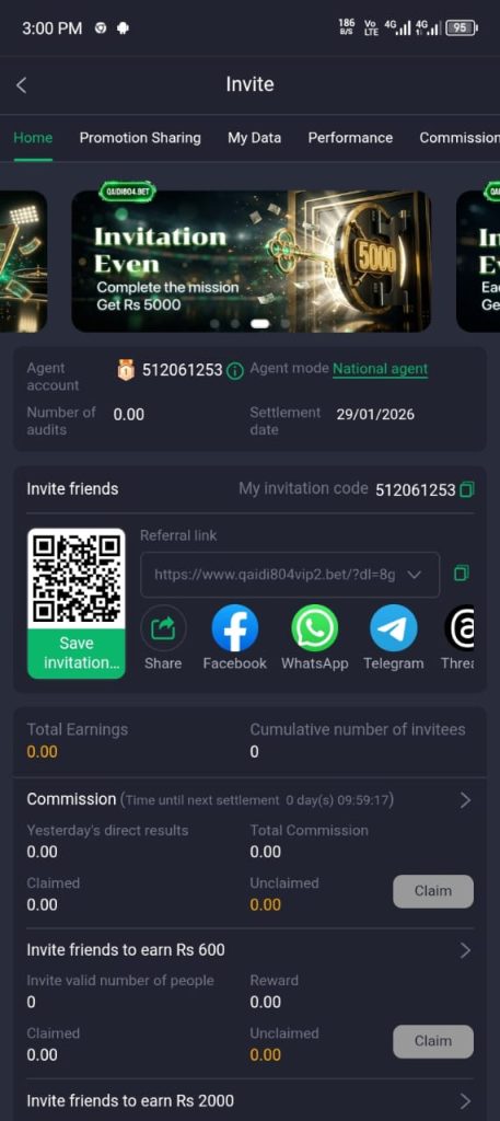 QAIDI 804 Game includes a referral system where users can invite friends and earn commissions. Each successful referral can provide: