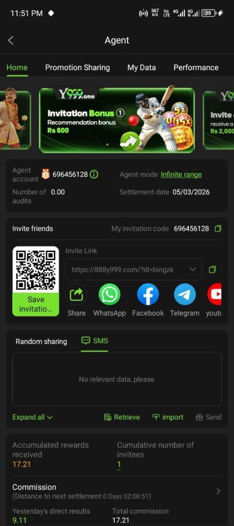 Users can invite friends to join the platform using a referral code. When the invited user registers and participates in activities, the inviter may receive referral rewards.